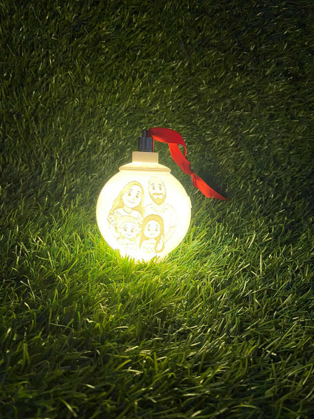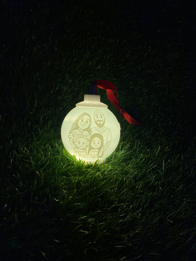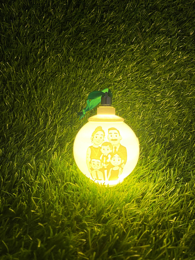 Feita em impressão 3D com o efeito lithophane, esta bola revela a tua fotografia favorita quando iluminada — criando um brilho suave e cheio de sentimento 🕯️