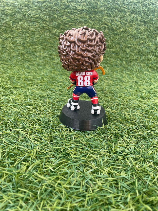 Cada figura é criada em 3D e pintada à mão, com atenção especial aos detalhes — roupa, postura, cores e até o nome na base, como o da imagem.